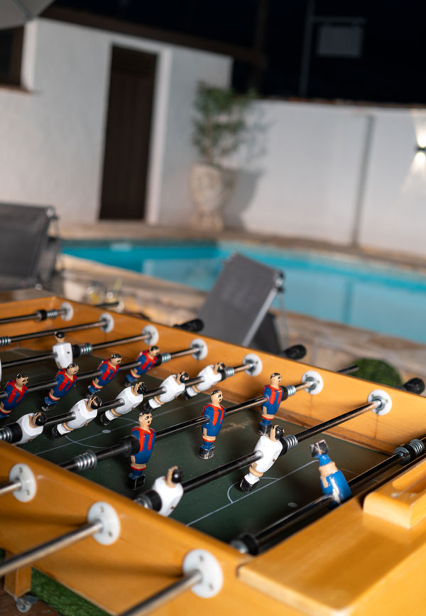 La capacidad es para un máximo de 8 personas con camas cómodas. Cocina totalmente equipada, piscina privada y vallada, zona de barbacoa, zona de relax, variedad en juegos de habilidades y de mesa y futbolín.
